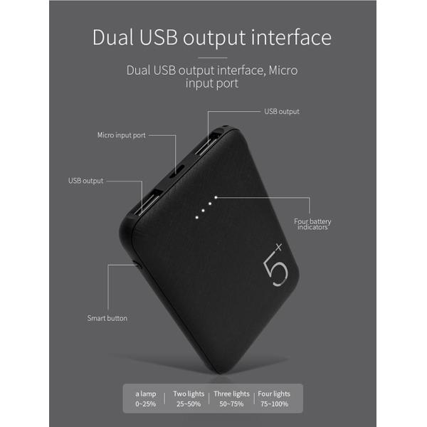 Super Mini Size 5000mAh Power Bank With 2 USB Port For Mobile Phone